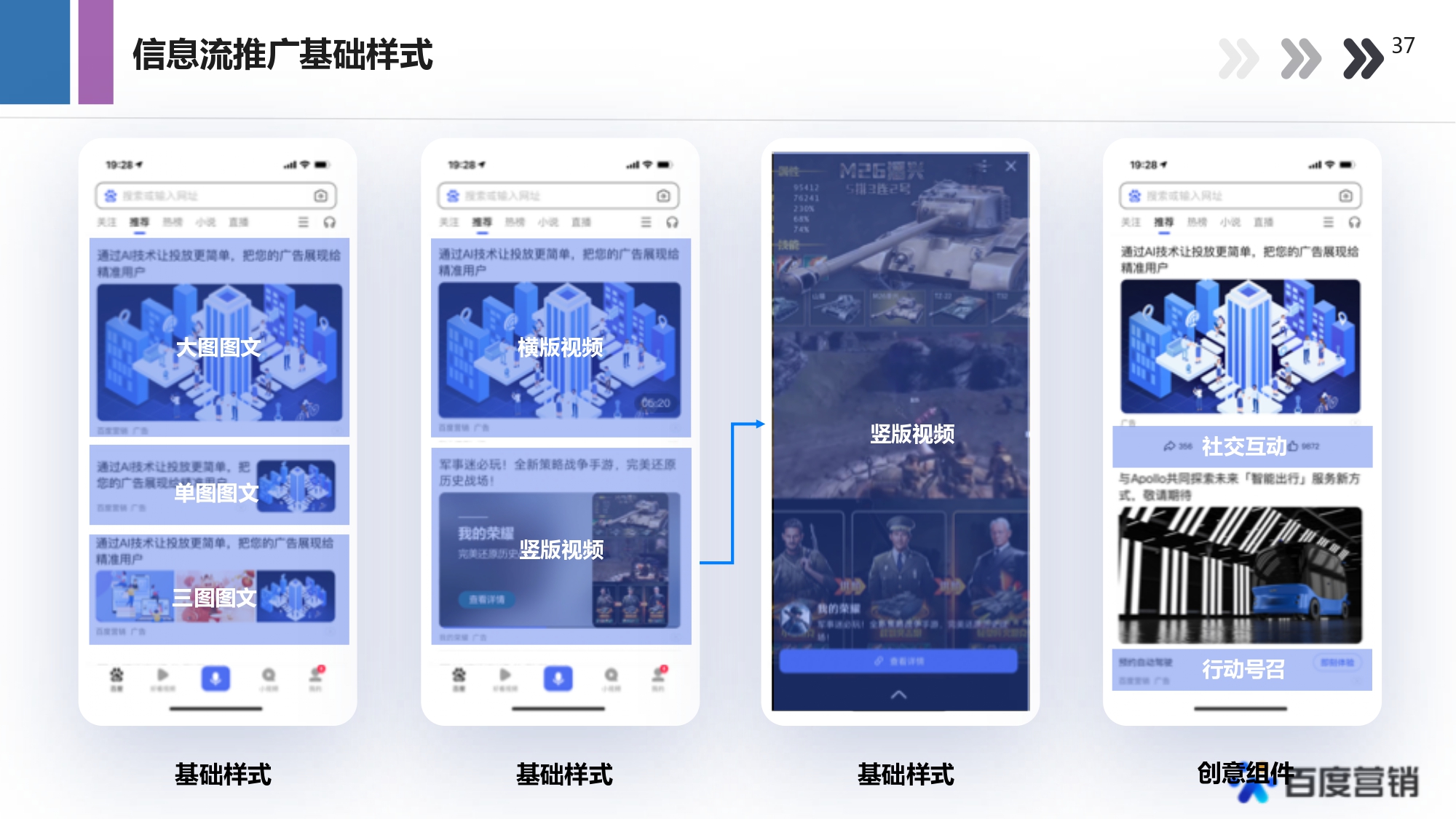 信息信息流廣告是在百度APP、貼吧等百度資訊流中穿插的原生廣告,通過“搜+推”雙引擎,將您的推廣信息自然融入在各類資訊、信息中,易傳播、易操作。