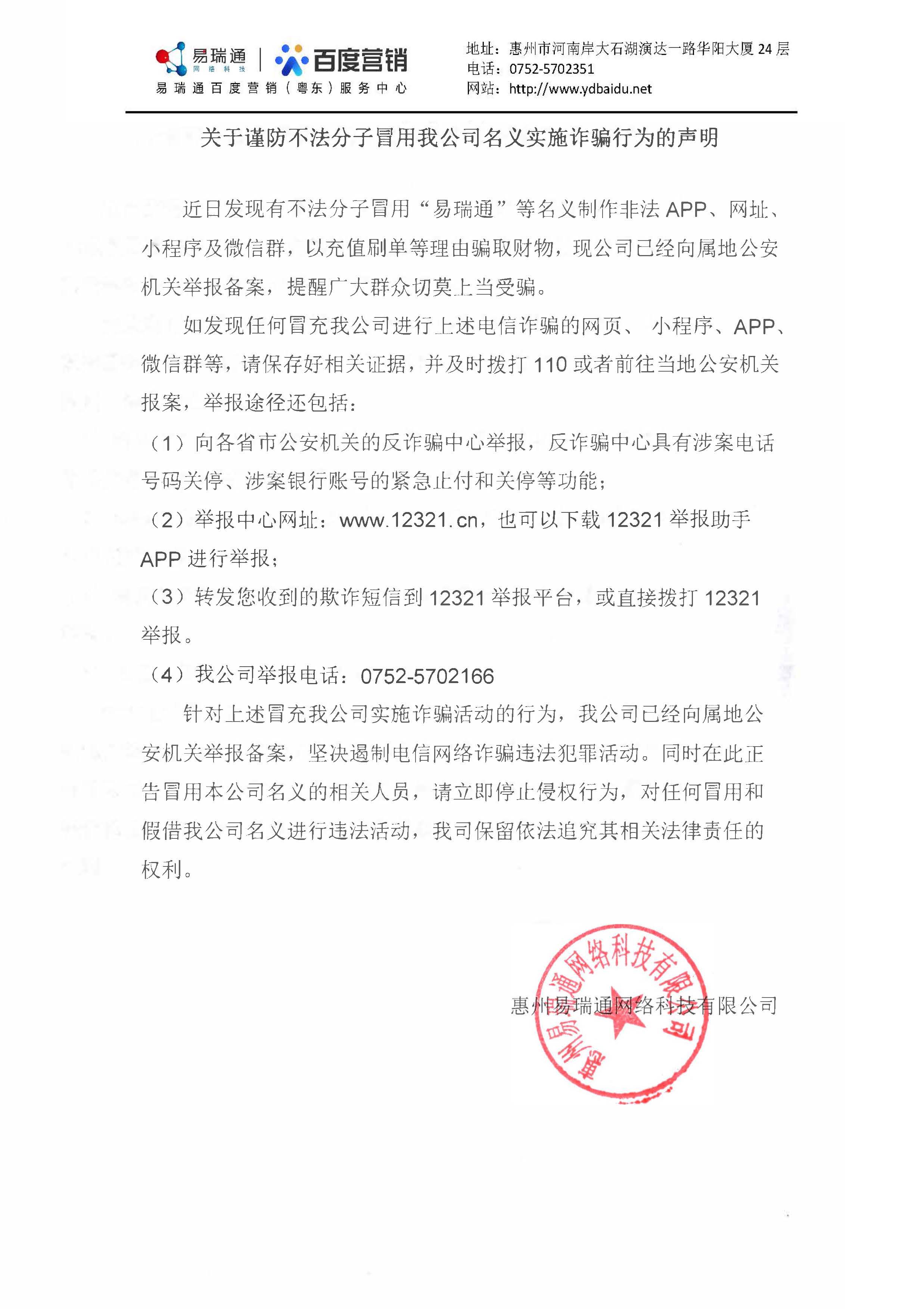 關(guān)于謹(jǐn)防不法分子冒用我司名義實(shí)施詐騙行為的聲明